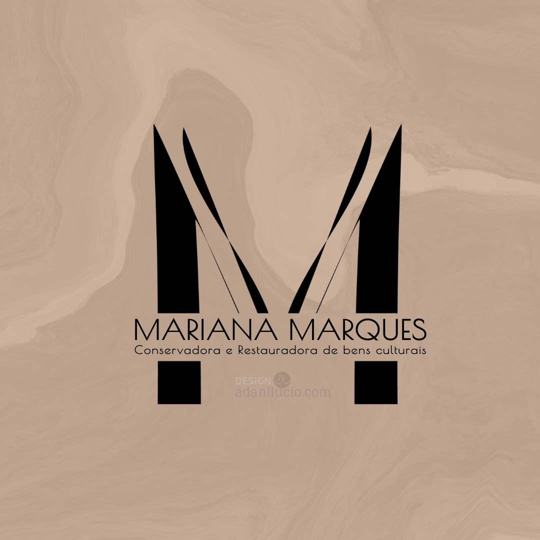 O logotipo de Mariana Marques, conservadora e restauradora de bens culturais, adota uma estética minimalista com uma paleta de cores bege e preta que realça a sofisticação e neutralidade. A letra ‘M’ no logotipo alude a uma moldura de museu, simbolizando seu trabalho. O nome e a função da profissional cortam a moldura, utilizando uma fonte baseada em formas geométricas com um toque de Art Déco e construtivismo, criando uma harmonia visual que reflete sua expertise e estilo.