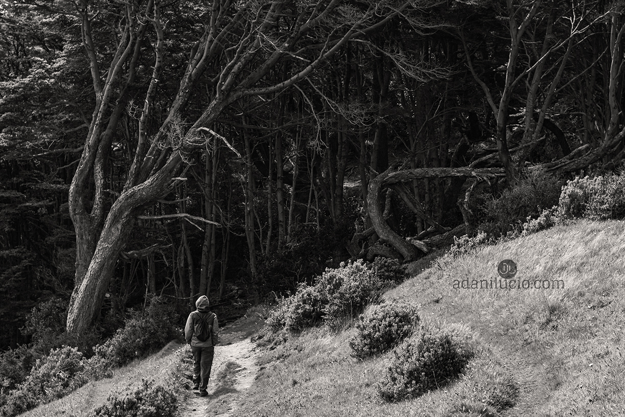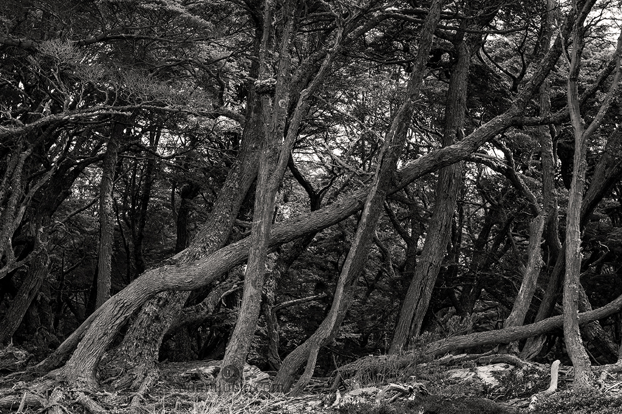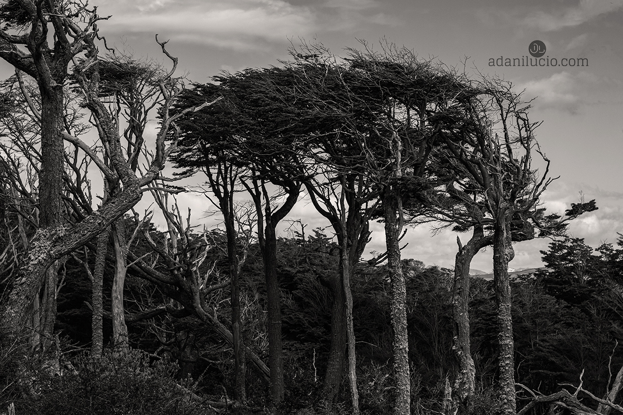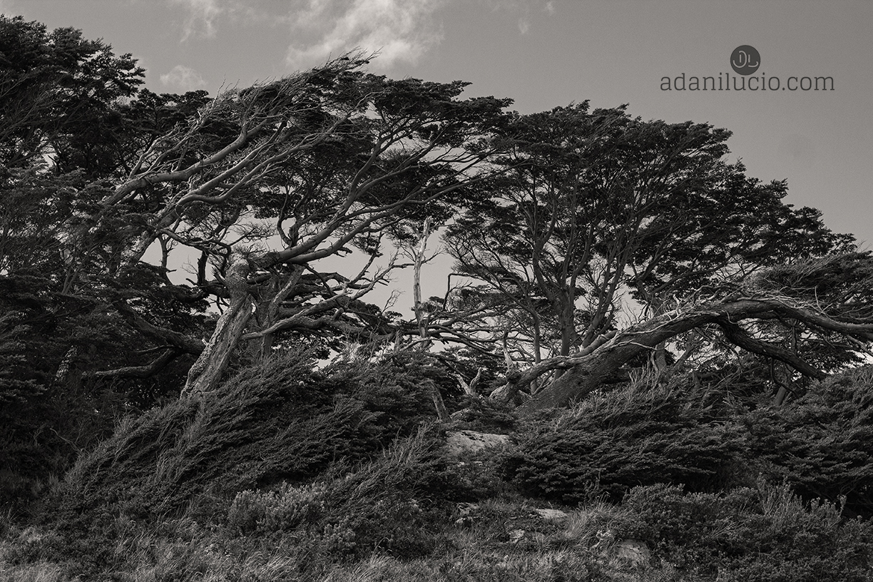 Histórias contadas pelo vento. O vento oeste que viaja do Chile e com persistência molda os que o atravessam. Tentei seguir seus rastros e as histórias que ele gentilmente revela… Sempre encontro meu caminho até as árvores, testemunhas silenciosas de eras passadas. Ao contemplar sua resistência ao vento, encontrei-me refletida nelas…